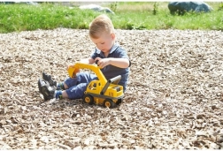 De bouwgraafmachine LENA ECO zal alle kleine bouwers blij maken. Dankzij de combinatie van gerecycled plastic en een houtmix is het speelgoed duurzaam, stabiel en tegelijk milieuvriendelijk. De beweegbare arm met graafbak maakt realistisch scheppen van zand en aarde mogelijk, terwijl de kantelbare cabine het hanteren vergemakkelijkt en creatief spel stimuleert.