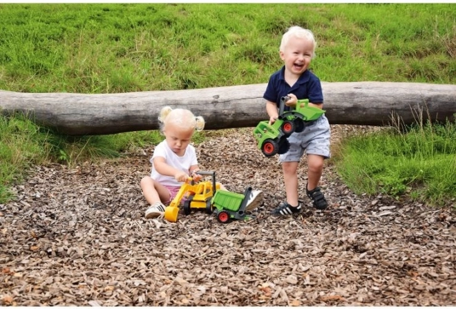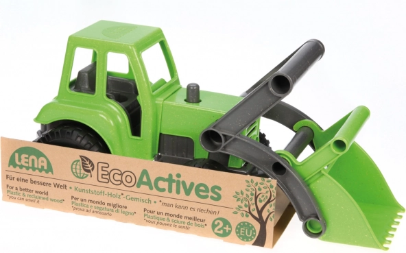 Ontdek een milieuvriendelijke manier van spelen met deze actieve tractor met voorlader van LENA. Het speelgoed is gemaakt van gerecycled plastic met houttoevoeging, is volledig mechanisch functioneel en heeft een kantelbare cabine voor eenvoudige bediening. Ideaal voor kinderen vanaf 2 jaar, voor binnen en buiten spelen.