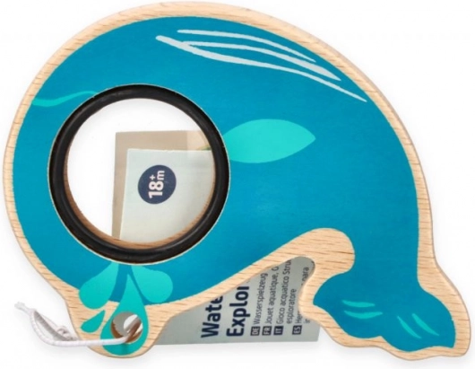 De turkooiskleurige walvis van hout en kunststof ligt perfect in een kleine kinderhand. Helpt de greep, hand-oogcoördinatie en de eerste omgang met voorwerpen spelenderwijs te trainen.