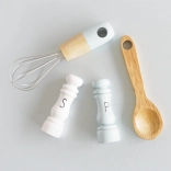 - Garde, houten lepel, zoutvaatje, peperstrooier