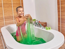 Verander gewoon water in groene slijm en geniet van onvergetelijk plezier in het bad.