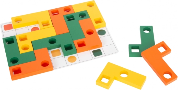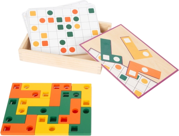 Dit houten logicaspel SMALL FOOT biedt kinderen leuke uitdagingen en slim leren. De stukjes met verschillende openingen worden volgens de voorbeelden op de speelkaartjes gelegd, waardoor kinderen nauwkeurigheid, geduld en een legstrategie oefenen. Dankzij de vrolijke kleuren en vormen is het spel aantrekkelijk en gemakkelijk te begrijpen.