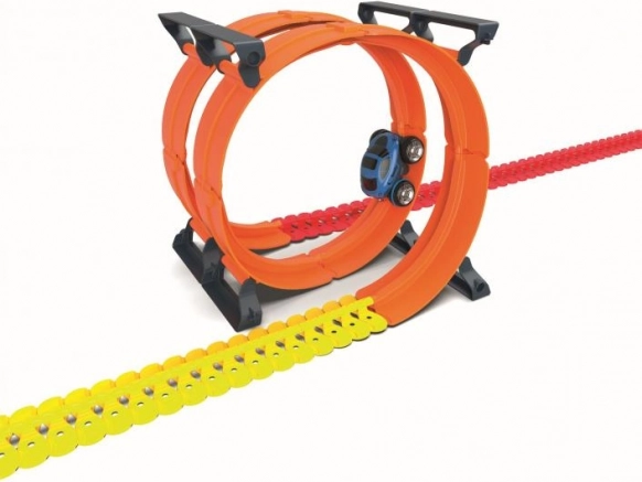 Combineer twee loopings tot één gigantische lus en geef de autootjes een razendsnelle doorgang met spectaculair g-kracht-effect.