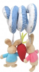 Rammelaar spiraal Flopsy Bunny is een pluchen speelgoed dat uw kinderen overal vermaakt. Aan de blauw-witte spiraal hangen konijnen en een rode aardbei, die zowel visuele als tactiele prikkels bieden.