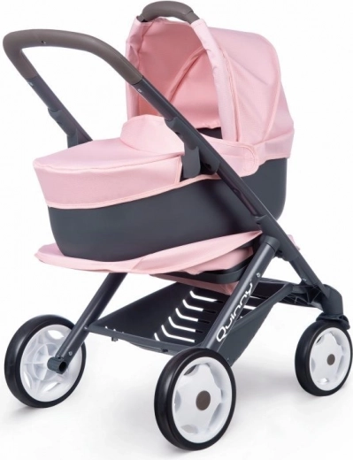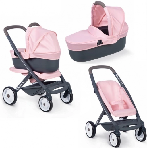 Stijlvolle combi-poppenwagen voor poppen tot 42 cm in een elegante lichtroze kleur, met veelzijdig gebruik als zowel een reiswieg als een buggy. Dankzij de afneembare wieg, zwenkende voorwielen en ergonomische duwbeugel (65 cm) is hij ideaal voor comfortabel spelen binnen en buiten. Fluisterstille wielen met een geluidsdempende laag zorgen voor een rustige rit.