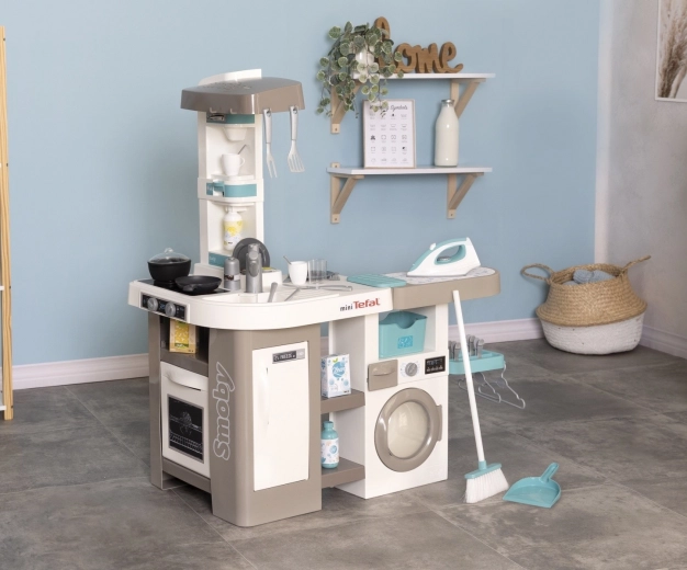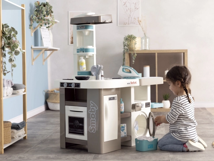 Geef kinderen een fantastische wereld van rollenspel met de SMOBY TEFAL Studio keuken met wasserij. Realistische functies zoals een elektronische kookplaat met 2 kookgeluiden, gootsteen met kraan, oven, koelkast en afzuigkap met geïntegreerde espressomachine en sodadispenser zorgen voor uren creatieve pret.