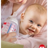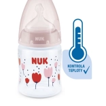 Temperatuurcontrole helpt ouders de optimale temperatuur te bereiken en zo veilig voeden van hun kind te waarborgen. Rustig en veilig voeden dankzij temperatuurcontrole. Wanneer een baby honger heeft, mag de voeding in de fles niet te heet en niet te koud zijn. Daarom controleren moeders en vaders vóór elke maaltijd de temperatuur van de voeding. Het is niet eenvoudig om te bepalen wanneer de voeding precies de juiste temperatuur heeft. Daarom zijn de NUK First Choice+ babyflessen met temperatuurcontrole ontwikkeld. Deze functie is in deze vorm niet eerder geïntroduceerd. NUK First Choice+ babyflessen zijn nu uitgerust met een nieuwe temperatuuraanduiding en helpen voorkomen dat je kind te hete voeding drinkt. De indicator ziet eruit als een thermometer, is geplaatst tussen de maataanduidingen en verandert van kleur afhankelijk van de temperatuur van de inhoud. Deze functie helpt ouders de optimale temperatuur te bereiken bij het voeden van hun kind. Als de voeding te heet is, verandert de blauwe indicator in wit. Idealiter heeft de voeding lichaamstemperatuur (37 °C), wat overeenkomt met een blauwe kleuring van het display. Let op: de temperatuurcontrole is bedoeld als extra controle. Voor het voeden moet de temperatuur ook handmatig worden gecontroleerd. Om de temperatuur te testen raden wij aan een paar druppels op de binnenkant van de pols te laten vallen. De meest natuurlijke speen voor je kind. Al vele jaren zijn First Choice-flessen de eerste keus voor flessenvoeding naar het voorbeeld van borstvoeding. Met First Choice+ zijn we de natuur nog dichter genaderd – ze ondersteunen een gezonde kaakontwikkeling en geven je baby het gevoel aan de borst te drinken. Natuurlijk en correct gevormd voor de kaak. De unieke vorm van NUK-spenen is gemodelleerd naar de tepel van de moeder tijdens het voeden. De speen laat voldoende ruimte voor natuurlijke zuigbewegingen van tong en kaak van je kind. Zacht als moeders borst. De siliconen speen is dankzij de nieuwe soft zone beter aangepast aan het gehemelte van je baby en zorgt zo voor een natuurlijk drinkgevoel. Voorkomt koliek. Het verbeterde Anti-Koliek Air System zorgt voor een gelijkmatige drinkstroom zonder lucht te slikken. Klinisch getest. Dankzij de bijzonder natuurlijke vorm wordt de speen door baby’s zeer goed geaccepteerd. Dat betekent dat ze bij uitstek geschikt zijn voor baby’s die zowel borstvoeding krijgen als uit de fles drinken. Babyfles: praktische NUK temperatuurcontrole-indicator die van blauw (koud) naar wit (te heet) verandert. Vrij van schadelijke stoffen en geurtjes – bevat geen BPA. Eenvoudig te vullen en te reinigen – extra brede fleshals. Zeker vast te houden en stabiel – dankzij de ergonomisch gevormde fles en brede bodem. Onbeperkt combineren – compatibel met alle NUK First Choice producten. Wetenschappelijke studie: Moral et al. BMC Pediatrics 2010, 10:6. Meer informatie op http://nuk.com/research. Onafhankelijk marktonderzoek met 205 kinderartsen, Duitsland 2018. 99% van de moeders bevestigde dat de NUK First Choice+ Control fles geen koliek veroorzaakt. Belangrijkste kenmerken: de temperatuur van de inhoud verandert de kleur van de indicator: als de voeding te heet is, verandert blauw in wit; ideaal voor de babykaak, speen van extra zachte siliconen, 0–6 maanden M (middengrote opening = voor babyvoeding); klinisch getest: voor een optimale combinatie van borst- en flesvoeding; aantrekkelijk design