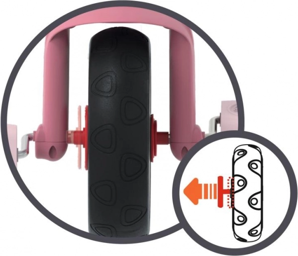 Antislip pedalen met mogelijkheid om het trappen te blokkeren zorgen voor veiligheid, terwijl een ergonomische zitting in twee standen kan worden aangepast voor het comfort van kinderen. Veiligheidsgordel en opklapbare plastic mand vergroten het gebruiksgemak. Stil rijden wordt gegarandeerd door stille wielen.
