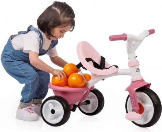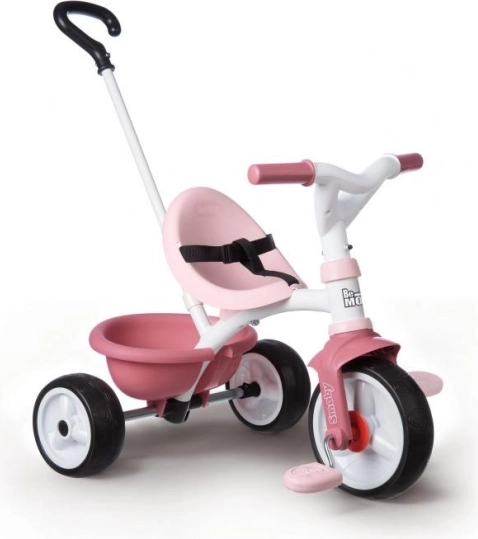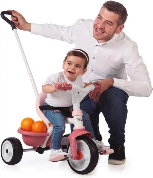 De roze kinderdriewieler Be Move brengt plezier in het rijden voor kleine meisjes. Dit model is uitgerust met een metalen frame voor maximale stabiliteit en een verstelbare duwstang, die drie hoogteniveaus biedt tot 95 cm.
