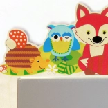 Stijlvolle kinder kapstok met spiegel met het motief van bosdieren siert zowel de kamer als de hal. Biedt vijf praktische haken voor jassen en accessoires en een veilige spiegel van onbreekbaar plexiglas. Gemaakt van verantwoord verkregen hout en afgewerkt met ecologische verven.