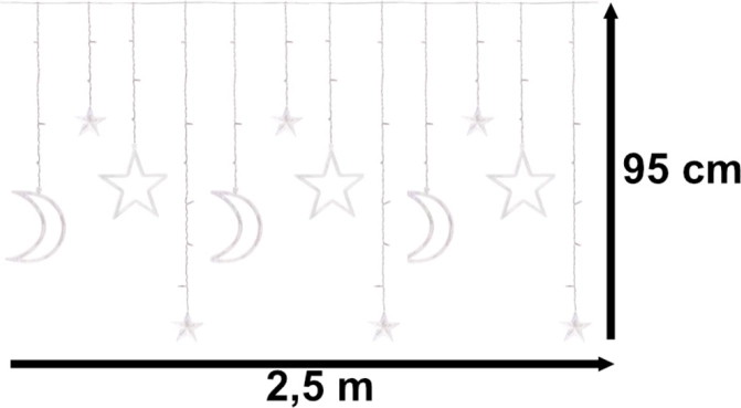 De royale breedte van 2,5 m en de maan- en sterrenmotieven toveren elk raam of elke muur om tot een knusse lichtscène. De koudwitte kleur onderstreept de winterse sfeer en brengt een frisse, moderne look in het interieur.