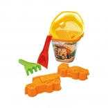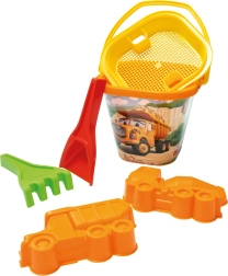 Emmer, schep, hark, zeef, 2 vormpjes (vrachtwagen, betonmixer)