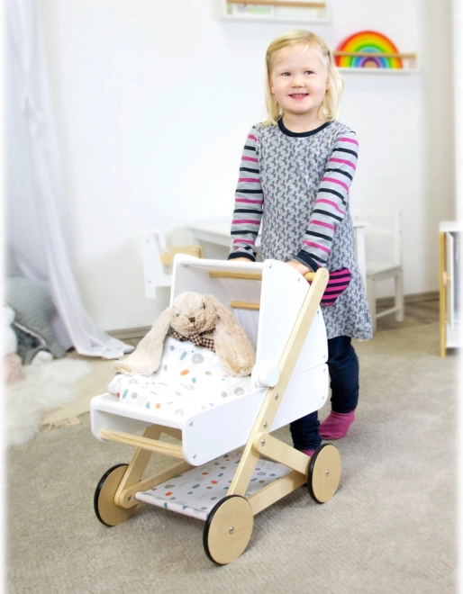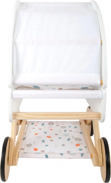 Ontdek een kwalitatieve poppenwagen die perfect past in elke kinderkamer. Combineert natuurhout, duurzame en afwasbare stoffen en een zachte kleurstelling. Het lage gewicht en de stabiele constructie zorgen voor een veilige rit, terwijl de rubberen wielen voor stille prestaties op elk oppervlak zorgen.