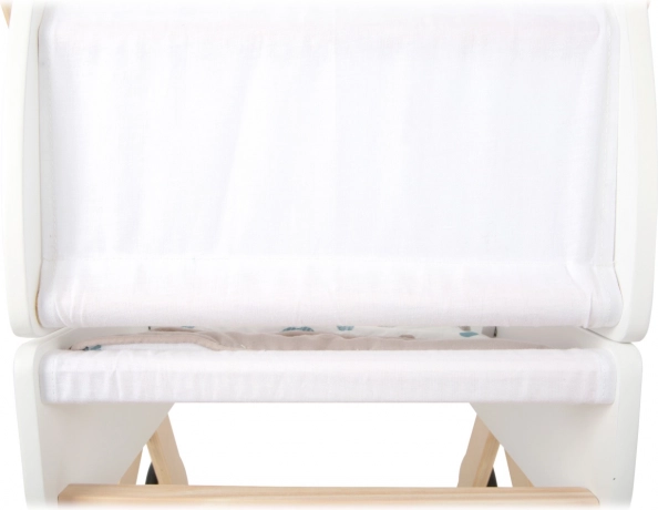 Praktische mand onder het liggedeelte en tweezijdig, neutraal beddengoed met een groot dekbed voor poppen tot 46 cm.