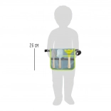 Het textiele heuptasje met praktische vakken houdt het gereedschap veilig op zijn plaats. De verstelbare riem met kliksluiting past zich eenvoudig aan de groei van het kind aan.
