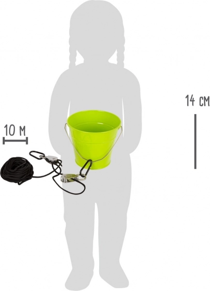 Ontdek een slimme manier om kinderen het tillen te vergemakkelijken – de small foot katrol met sterk touw en een duurzame metalen emmer. Dankzij het mechanisch voordeel van katrollen vervoeren kinderen de “lading” gemakkelijk en veilig omhoog en omlaag, zonder steeds te hoeven klimmen. Een geweldig speelgoed voor het speelhuisje in de tuin, klimtoestellen en boomhut, dat handigheid, logisch denken en begrip van het katrolprincipe ontwikkelt.