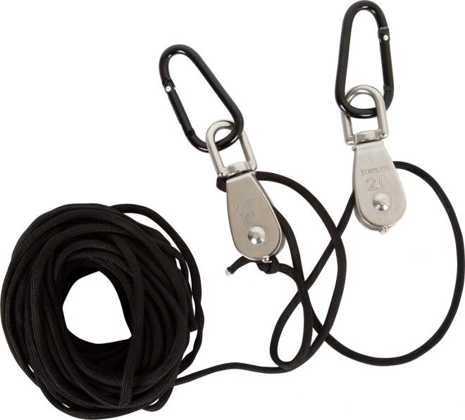 Het lange, stevige touw maakt comfortabel hijsen en neerlaten van de lading vanaf een veilige afstand mogelijk – ideaal voor speelhuisjes en klimtoestellen.