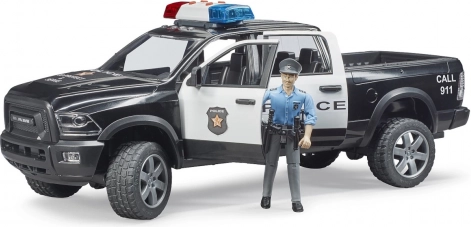 De BRUDER RAM politie pick-up brengt kinderen authentieke actie en veel speelmogelijkheden. Dankzij de robuuste constructie van hoogwaardig ABS-plastic, realistische details en functionele elementen kan hij elke missie aan – van stads patrouilles tot inzetten in bos of bergen.