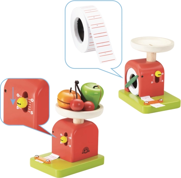 De eenvoudig instelbare aanwijzer helpt kinderen balans en gewichtsvergelijking te begrijpen tijdens het winkeltje spelen.