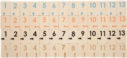 Massieve houten stenen met cijferopdruk en symbolen zijn duidelijk leesbaar en aangenaam om aan te raken. Voor stabiliteit en privacy bij het leggen van combinaties zorgen de licht gebogen houten standaards. Het spel bevordert logisch denken, strategie en concentratie bij spelers van alle leeftijden.