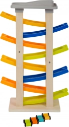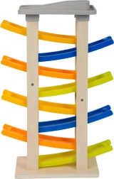 Deze hoge racebaan met acht hellingen en parkeergarage biedt plezier en ontwikkeling voor kinderen. Bevat vier kleurrijke houten autootjes en biedt een stabiele constructie dankzij stevig hout en plastic.