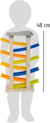 De baan is gemaakt van natuurlijk hout en stevig plastic, wat zorgt voor een lange duurzaamheid tijdens het spelen. Het kleurrijke ontwerp van de baan is niet alleen mooi, maar ook ideaal voor ontwikkeling van motoriek en hand-oogcoördinatie.