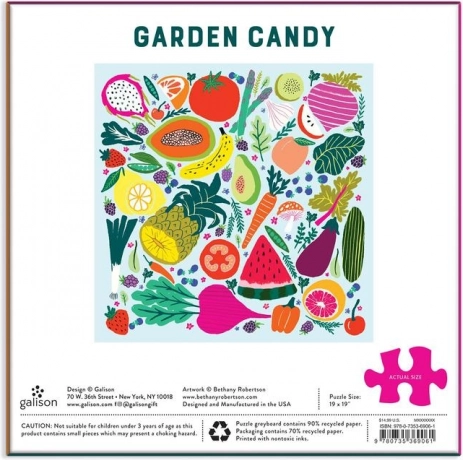 Geniet van ontspanning met de prachtige GALISON puzzel Zoete tuin met 500 stukjes. Een geïllustreerde collage van kleurrijk fruit en groenten zal zowel kinderen als volwassenen plezier doen. De stukjes van gerecycled papier passen precies in elkaar, de print is gemaakt met niet-giftige inkten en de stevige matte doos zorgt voor een lange levensduur. Premium kwaliteit voor ontspannen leggen en de ontwikkeling van logisch denken en fijne motoriek.