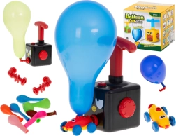 • 15-delige set: 1× lanceerder/pomp, 2× autootje, 10× ballon, 2× koppeling