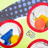 Het spel met doelwit is ideaal voor buitenplezier in het park of in de tuin, evenals voor binnen spelen thuis. Kinderen kunnen achter een gemarkeerde lijn staan en gekleurde ballen of zakjes naar doelen met verschillende punten gooien, wat niet alleen leuk is, maar ook precisie en concentratie oefent.