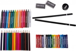 De set bevat een brede variëteit aan kleuren en accessoires, waarmee je je fantasie direct op papier kunt brengen. Van schoolbenodigdheden tot grotere kunstprojecten, deze set biedt eindeloze mogelijkheden.