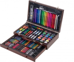 Deze prachtige artistieke set is ideaal voor iedereen die wil experimenteren met verschillende teken- en schildertechnieken. Het komt in een handige houten koffer waarin je alle benodigde hulpmiddelen overzichtelijk gerangschikt vindt in handige vakken.