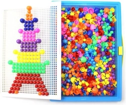 Dit speelgoed is geliefd bij generaties kinderen en wordt nostalgisch herinnerd door volwassenen. Eenvoudige constructie bestaande uit gekleurde plastic paddenstoeltjes in verschillende groottes en een geperforeerde basisplaat voor het insteken ervan. Alles is opgeborgen in een compacte koffer, zodat uw kind zijn favoriete speelgoed overal mee naartoe kan nemen.