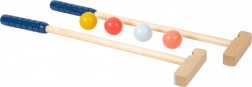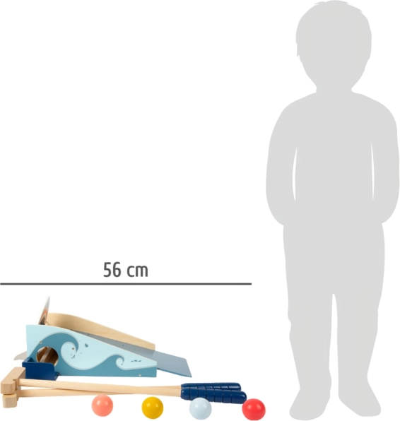 De hoogwaardige combinatie van multiplex en massief hout zorgt voor sterkte en duurzaamheid. Een praktische opening aan de zijkant geeft de opgeslokte balletjes terug, waardoor het spel vlot blijft en kinderen snel kunnen doorwisselen. De set met 2 clubs en 4 balletjes is ideaal voor broers en zussen of vriendjes – en is ook perfect voor regenachtige dagen.