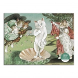 Klassieke kunst met kattige speelsheid: deze puzzel transformeert Botticelli’s De Geboorte van Venus in een geestige kattenscène door illustratrice Susan Herbert. Bevat 1000 stukjes met een preciese stans voor soepel leggen, verpakt in een stevige doos met matte afwerking en inclusief een voorbeeldposter. Een geweldige keuze voor katten- én kunstliefhebbers vanaf 8 jaar.