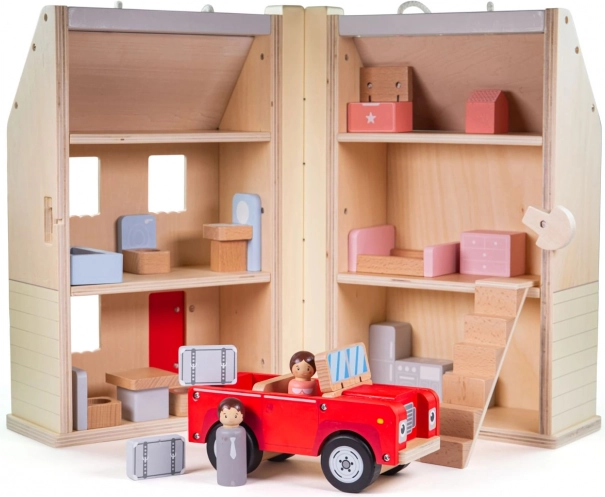 Opklapbaar houten poppenhuis met accessoires BIGJIGS TOYS