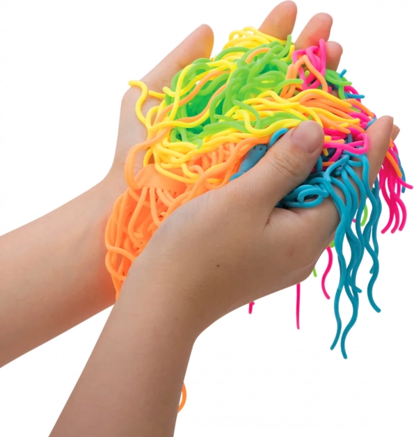 Ontdek de kleurrijke sensorische NEE DOH NOODLIES van SCHYLLING – leuk antistressspeelgoed dat je kunt knijpen, rekken en in knopen leggen zonder rommel. Vijf fluorescerende kleuren bieden unieke sensorische stimulatie, bevorderen de concentratie en helpen angstgevoelens te kalmeren, thuis, op school en op kantoor.