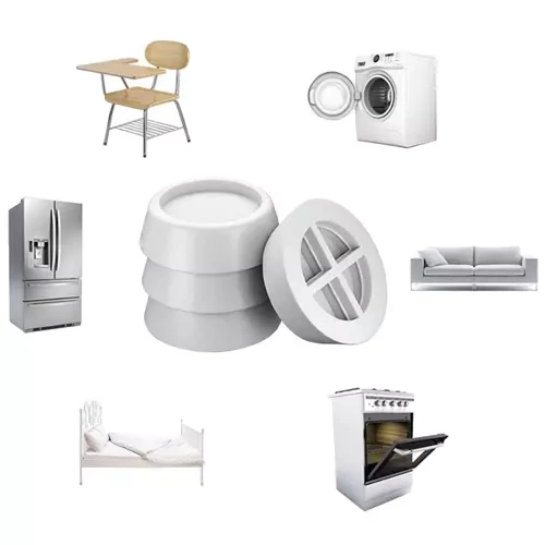 Massieve TPR-onderleggers met dempende structuur absorberen trillingen en geluid, waardoor de wasmachine tijdens het centrifugeren niet beweegt en het huishouden niet stoort.