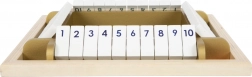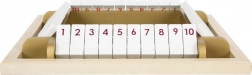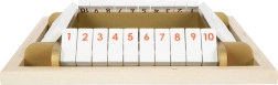 Stevig houten bord met kantelbare klepjes 1–10 en moderne gouden accenten, indruk makend door look én duurzaamheid – ideaal voor kinder- en woonkamer.