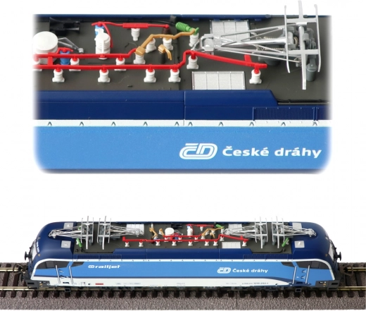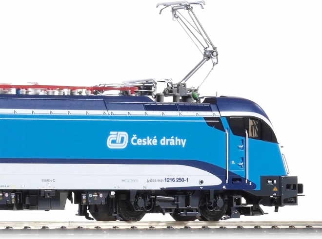 Deze nauwkeurige replica van de iconische locomotief RH 1216 TAURUS van Siemens in uitvoering van de Tsjechische Spoorwegen (tijdperk VI) blinkt uit door uitzonderlijk precieze detaillering – van het draaistel met fijn gemodelleerde remuitrusting tot de messcherpe bedrukking met contrasterende pictogrammen. De aerodynamische kap is voorzien van subtiel geplaatste handgrepen, treden en een realistisch dak met een viertal pantografen.
