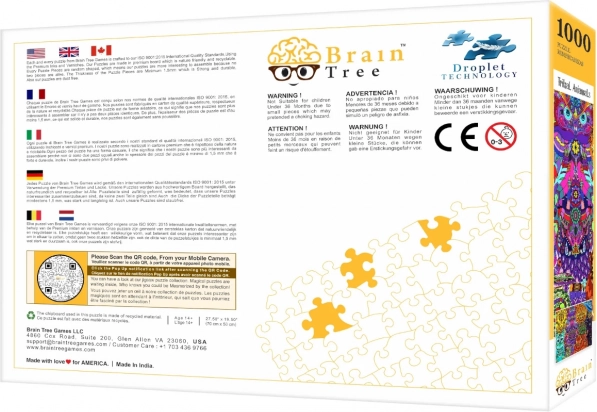 Puzzle BRAIN TREE Stam dieren biedt een visueel meeslepend motief vol kleur en detail, dat uitblinkt dankzij de premium print en het matte oppervlak. Elk stukje is uniek uitgesneden, wat het leggen leuker en verrassender maakt dan bij klassieke rasteruitsneden.
