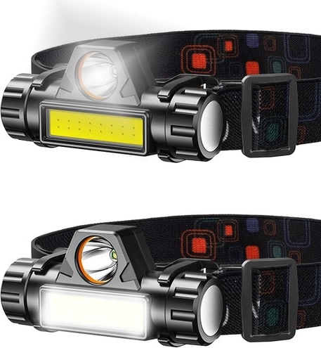 Gemaakt van hoogwaardig materiaal, aluminium en ABS, is deze hoofdlamp bestand tegen mechanische schade. Hij beschikt over twee lichtmodi en zowel een COB-LED als CREE-paneelverlichting. Dankzij de ingebouwde accu die via de USB-poort wordt opgeladen, geniet u van volledige bewegingsvrijheid.