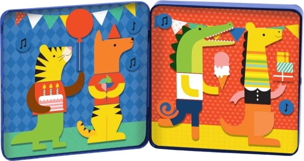 Het magnetische boekje Dierenfeest PETIT COLLAGE zorgt voor uren creatief plezier. In de compacte metalen doos kunnen kinderen dieren en accessoires combineren en hun eigen verhaaltjes maken. Dankzij de magneten blijven de onderdelen goed zitten, waardoor het spel ideaal is voor in de auto, trein of het vliegtuig.