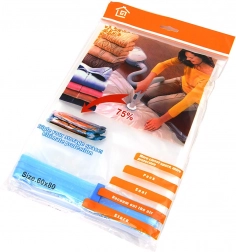Stop er schone en droge kleding in, sluit met de slider en zuig de lucht eruit met een stofzuiger. De spullen zijn beschermd tegen stof, mijten, motten en vocht. Na het uitnemen krijgen ze hun vorm weer terug.