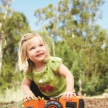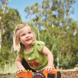 Het is uitgerust met stevige banden die soepel rijden op verschillende ondergronden mogelijk maken. De afneembare achterkar is ideaal voor het vervoeren van boerderijproducten, wat de speelmogelijkheden vergroot. Het originele ontwerp en de afwezigheid van metalen assen zorgen voor maximale veiligheid voor uw kinderen.