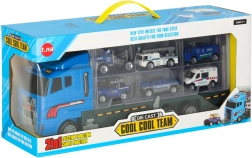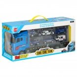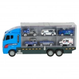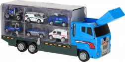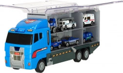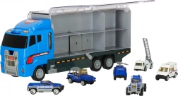 De grote blauwe vrachtwagen combineert de functie van opbergruimte met de mogelijkheid om te spelen. Het kan tot 14 kleine metalen autootjes vervoeren, die deel uitmaken van de verpakking. De autootjes imiteren realistische politie- en noodvoertuigen. De vrachtwagen heeft twee kanten met transparante deurtjes en veiligheidssloten om ervoor te zorgen dat de autootjes niet uitvallen tijdens het rijden. Bovendien bevat het een autolanceerder aan de voorkant die extra dimensie aan het spel toevoegt.