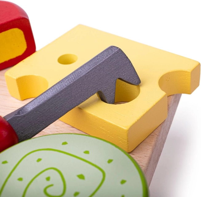 Hout is het belangrijkste materiaal van deze zorgvuldig vervaardigde kaasset. Kinderen kunnen de rol van chef-kok uitproberen met gekleurde houten kaasstukken die eruitzien als echte kazen. De set bevat niet alleen kazen, maar ook een mes en crackers, die dienen om het serveren van kazen perfect na te bootsen. De houten stukken nodigen uit tot creatief spel en helpen ook bij de ontwikkeling van de fijne motoriek van kinderen.