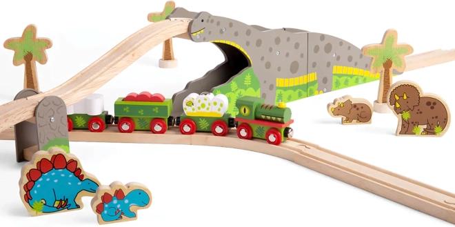 Geef kinderen een origineel element voor hun treinbaan – een dinosaurusbrug die elke rit in een avontuur verandert. De robuuste houten constructie met dinosaurusmotief laat treinen over de rug rijden én door de tunnel gaan, wat de variatie in de baan vergroot en creatief spel stimuleert.