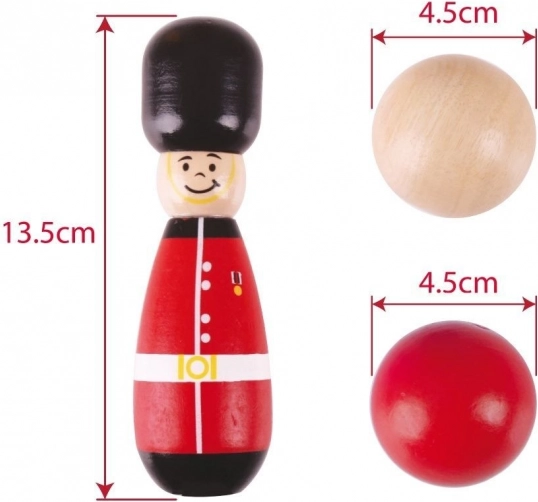 Geniet van het klassieke kegels spel waarbij de kegels omvallen en weer rechtop worden gezet. Zes houten kegels en één houten bowlingbal zijn geweldige hulpmiddelen voor de ontwikkeling van behendigheid en coördinatie. De set bevat: