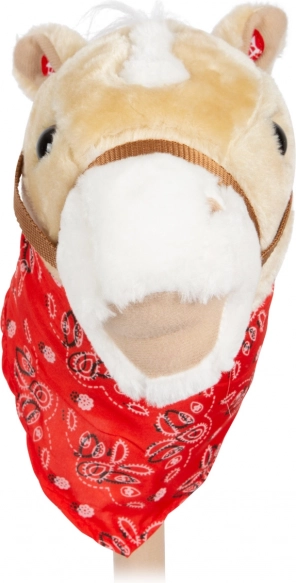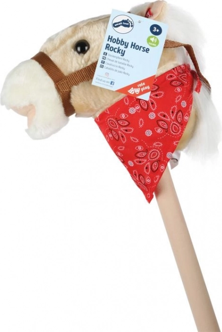 Konijn op stok Rocky is uitgerust met een knop op het oor die bij drukken een realistisch hinniken laat horen, wat bijdraagt aan de authenticiteit tijdens het spelen.