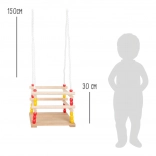 Deze houten schommel SMALL FOOT is ontworpen voor comfortabel en veilig schommelen van kleinere kinderen. De beschermende afscherming biedt steun bij het zitten en vasthouden, de sterke touwen met metalen doorvoeren maken snel aanpassen van de lengte mogelijk en de duurzame metalen ringen zorgen voor eenvoudig ophangen. Het nauwkeurig afgewerkte massieve hout geeft de schommel een lange levensduur en een natuurlijke uitstraling.
